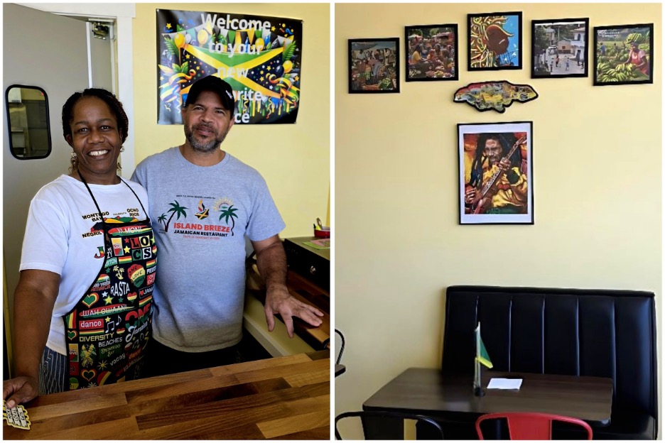 Island Breeze Jamaican Restaurant front, Owners Juanita Vernal & Junior Gil, partial dining room view; Photos by Nick Rama