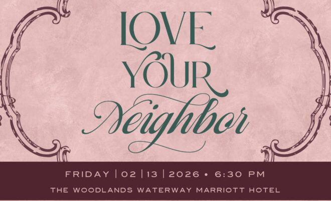February 13, 2026 – Save the date! 2026 The Woodlands Celebration of Excellence Gala with the theme “Love Your Neighbor” will be held on Friday, February 13 at The Woodlands Waterway Marriott. https://woodlandsinterfaith.org/events/
