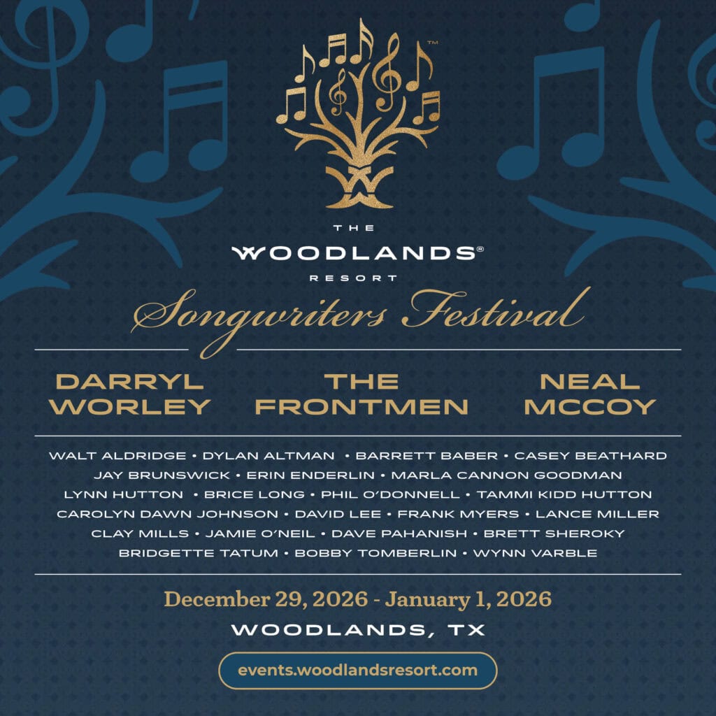 December 29, 2025 – January 1, 2026 – Experience the inaugural Songwriters Festival at The Woodlands® Resort, a three-day celebration of storytelling through music. Enjoy intimate performances and conversations with headliners Darryl Worley, The Frontmen, and Neal McCoy, along with acclaimed songwriters whose words and melodies have shaped the genre. In addition, guests can choose from exclusive VIP experiences featuring receptions, meet-and-greets, and curated dining. Finally, the weekend culminates with a festive New Year’s Day Brunch in the Grand Ballroom, featuring a 14-piece live jazz band to welcome 2026 in unforgettable style. Book Your Tickets Here