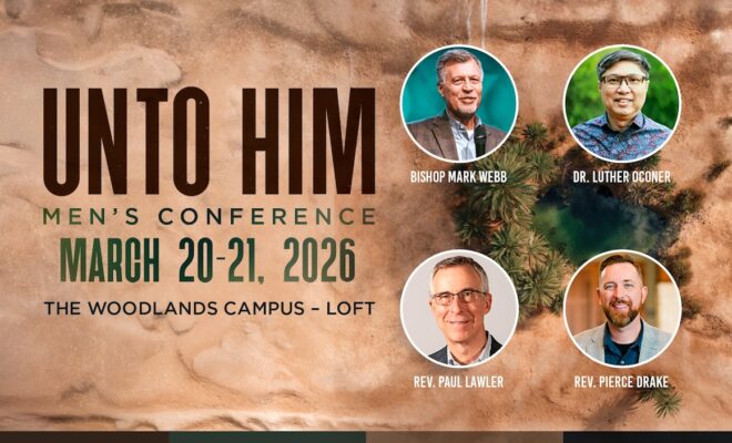 March 20 – 21, 2026 – Men of all ages, join The Woodlands Methodist Church Men’s Ministry for Unto Him Men’s Conference, a powerful weekend to surrender fully to Christ and learn to walk boldly in His truth. Through teaching, worship and fellowship, we will be challenged to leave behind distraction and live wholly in Him. Don’t miss this time of renewal and realignment.