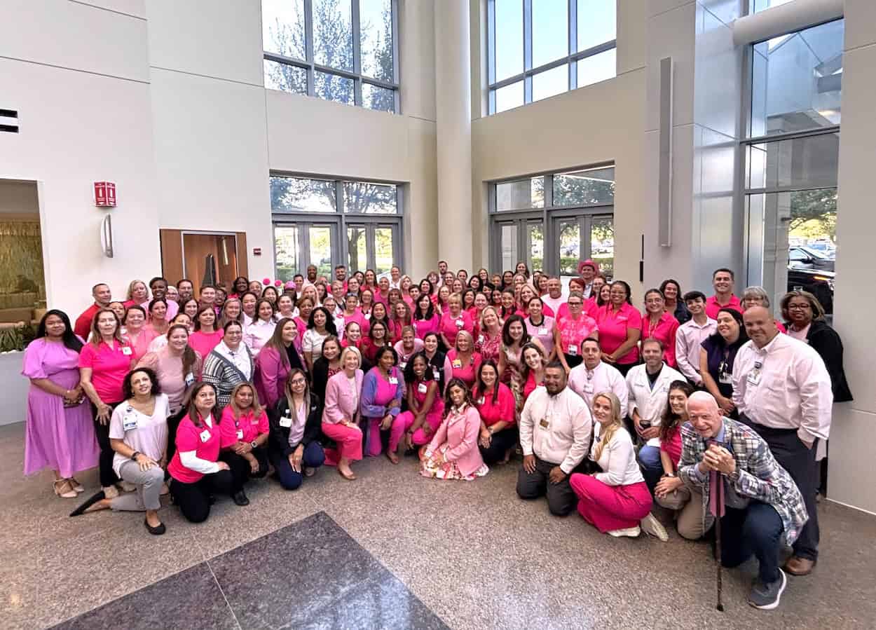Houston Methodist The Woodlands Hospital embracing pink for Breast Cancer Awareness Month.