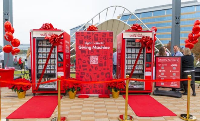 The Woodlands celebrated the arrival of the Light the World Giving Machines in Hughes Landing in 2024; Photo Credit: Rod Prado