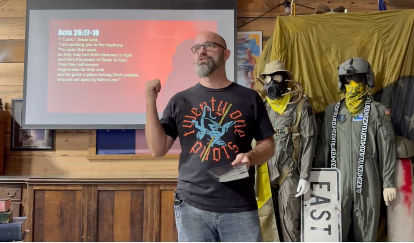 Justin Ulmer preaching at Honor Café in downtown Conroe