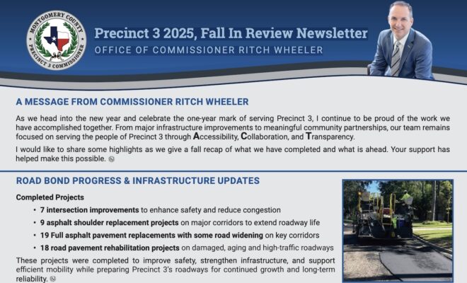 Montgomery County Commissioner Pct. 3 shares Quarterly Update, Town Hall on March 26