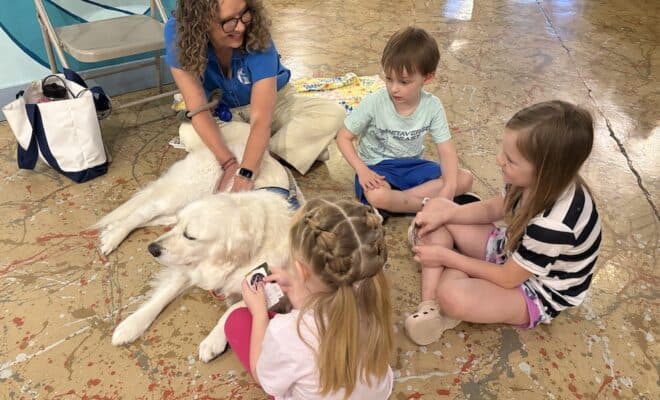 Pets with a Mission Therapy Dogs during this year’s Children’s Book Week at The Woodlands Children’s Museum