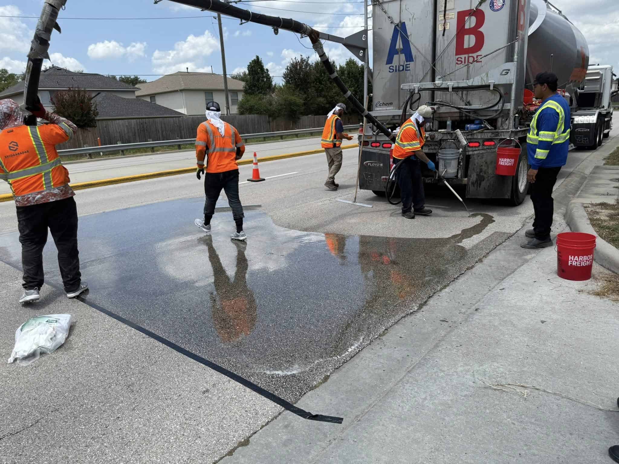 Precinct 3 applies High-Friction Surface Treatment to improve safety on Rayford Road’s S Curve