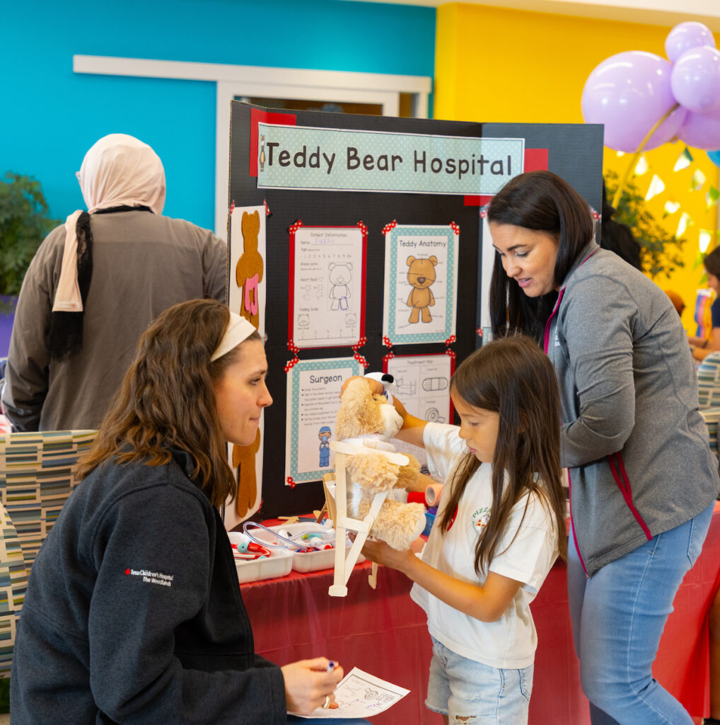 At the Teddy Bear Clinic, children received a free teddy bear donated by Bank of America and had the opportunity to perform a checkup for their new friend. The community-wide event helped children and their families prepare for their visit to the hospital.