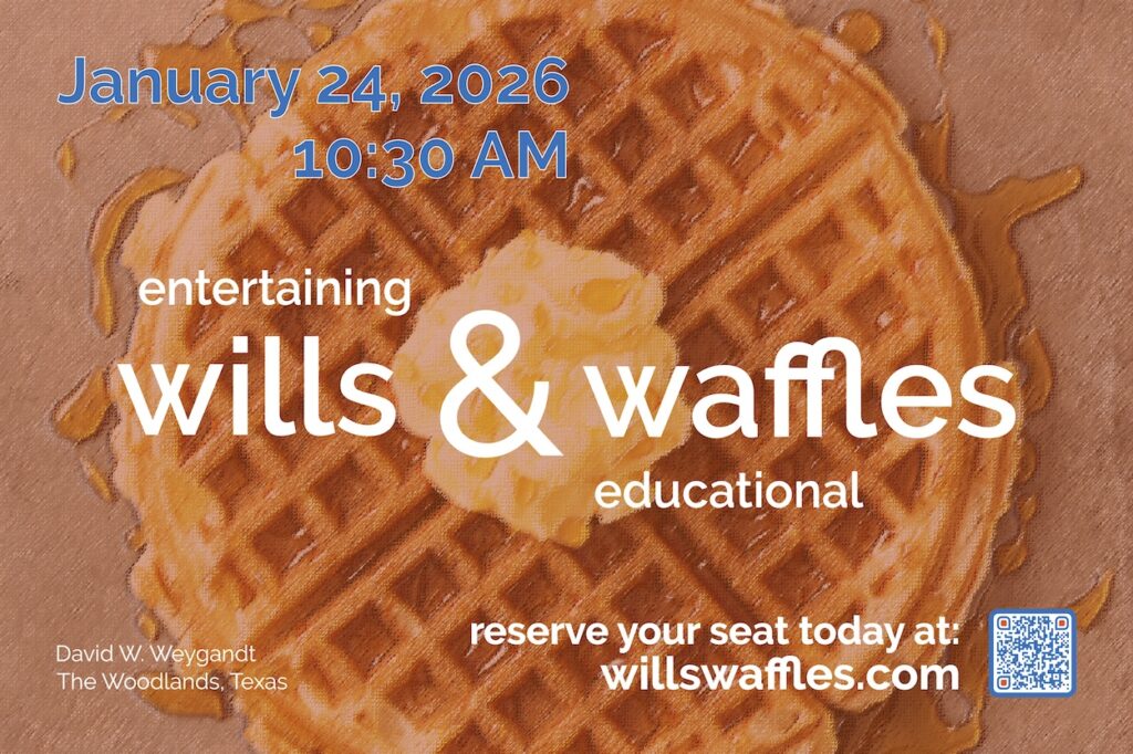 January 24, 2026 – Wills & Waffles: entertaining, educational & interactive spin on estate planning 101 – Join Weygandt Law for Wills & Waffles, an in-person event on January 24, 2026 at 10:30 a.m. – 12:30 p.m. This entertaining, educational & interactive estate planning seminar is designed to help you plan for the inevitable. You will learn how you can have peace of mind knowing you are keeping your family in tune. There is no cost to attend, but advanced registration is required. Register Today