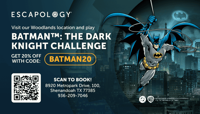 Escapology The Woodlands is a unique, immersive, and always private escape game where players are gathered inside a themed room and must complete their mission before time runs out. Stepping inside a real-life adventure, they must find hidden clues, crack codes, and solve puzzles to make an escape—all in an hour! Learn More