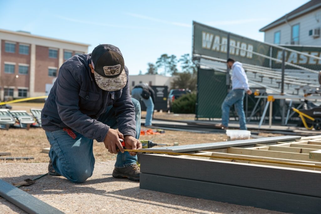The Woodlands Christian Academy (TWCA) recently welcomed back Austin Baker (Class of 2017) and Zack Baker (Class of 2018) — brothers, alumni, and former Warrior baseball players — who recently returned to campus to help renovate seating at the school’s baseball field. This time, instead of playing on the field, they’re improving it for the next generation.