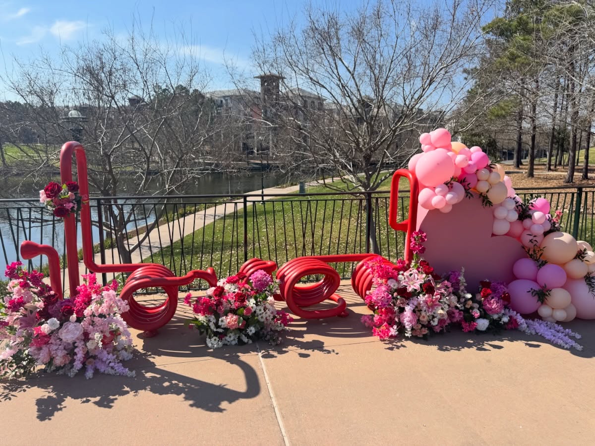 The “You Are LOVED” Bench on The Woodlands Waterway Transformed for Valentine’s Day
