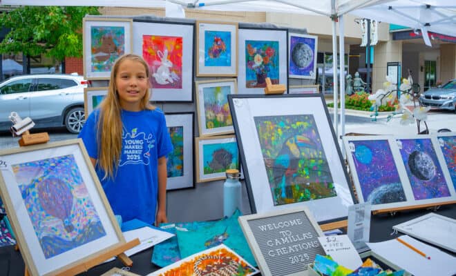 The Woodlands Arts Council’s Young Makers Market was held on Saturday, September 6, 2025 at Market Street in The Woodlands. The second edition of the Young Makers Market showcased over 40 gifted young artists, ages 9-18, from The Woodlands and Montgomery County. The community came out and purchased original artwork crafted by students ranging from 3rd to 12th grade.